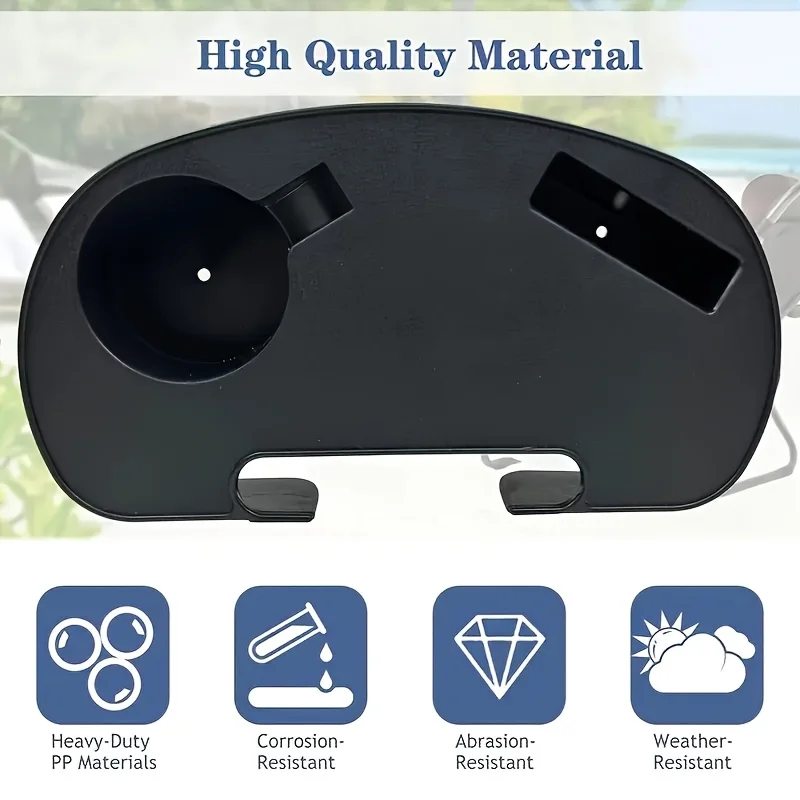 1pc Durable Folding Chair Side Table Attachment, Plastic Beverage and Snack Storage Tray, No Electricity Needed, Black