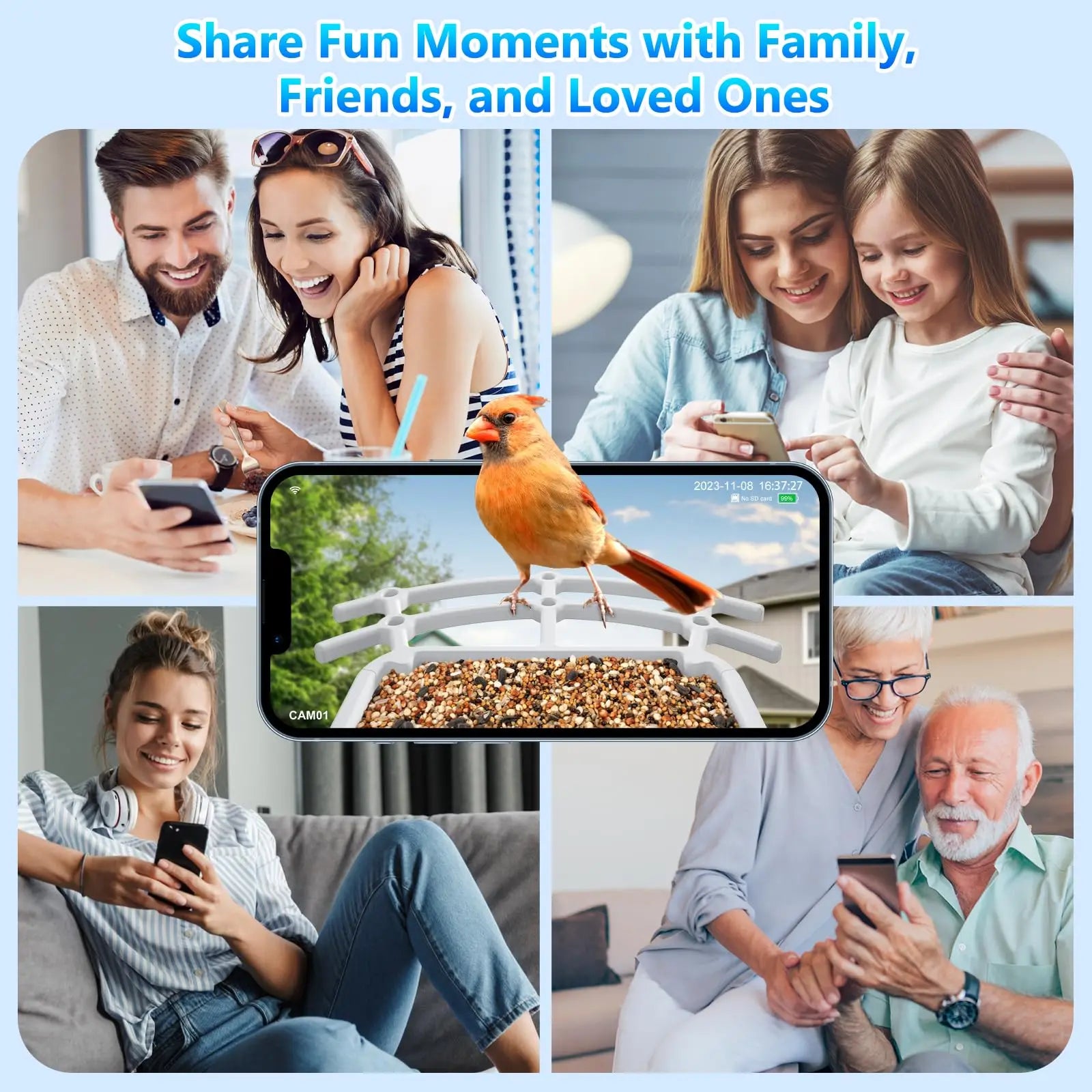 【Squirrel-Proof Design】: With its IP66 waterproof rating and built-in microphone, this bird camera effectively keeps squirrels away while attracting various bird species. The AI recognition feature accurately identifies birds, providing a hassle-free feeding experience.
