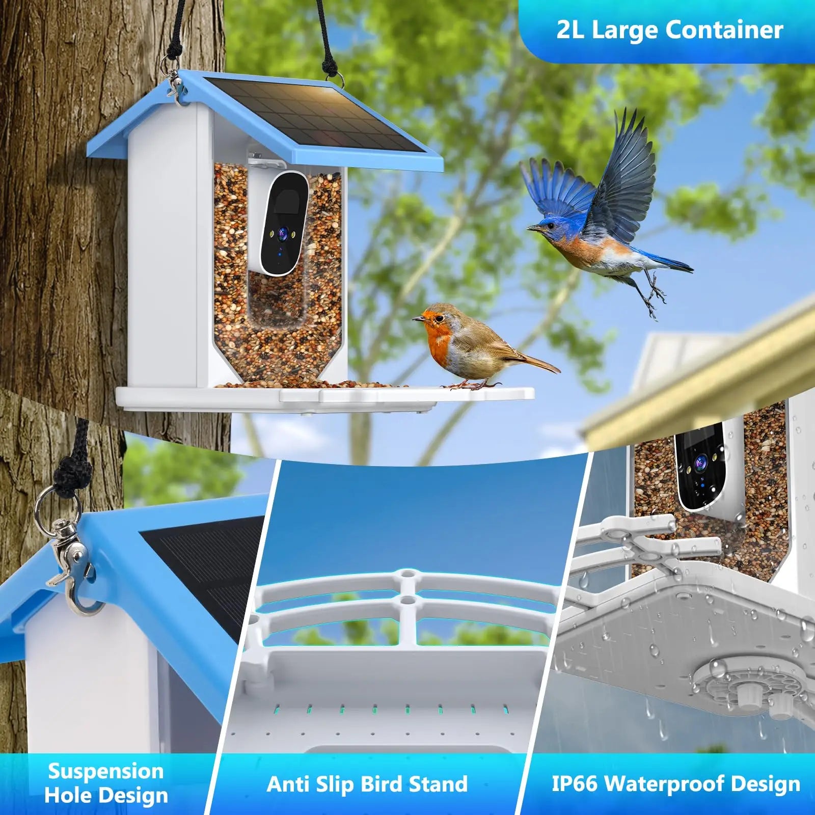 Smart Bird Feeder with Camera 2.4K Screen Solar Low Power Night Vision