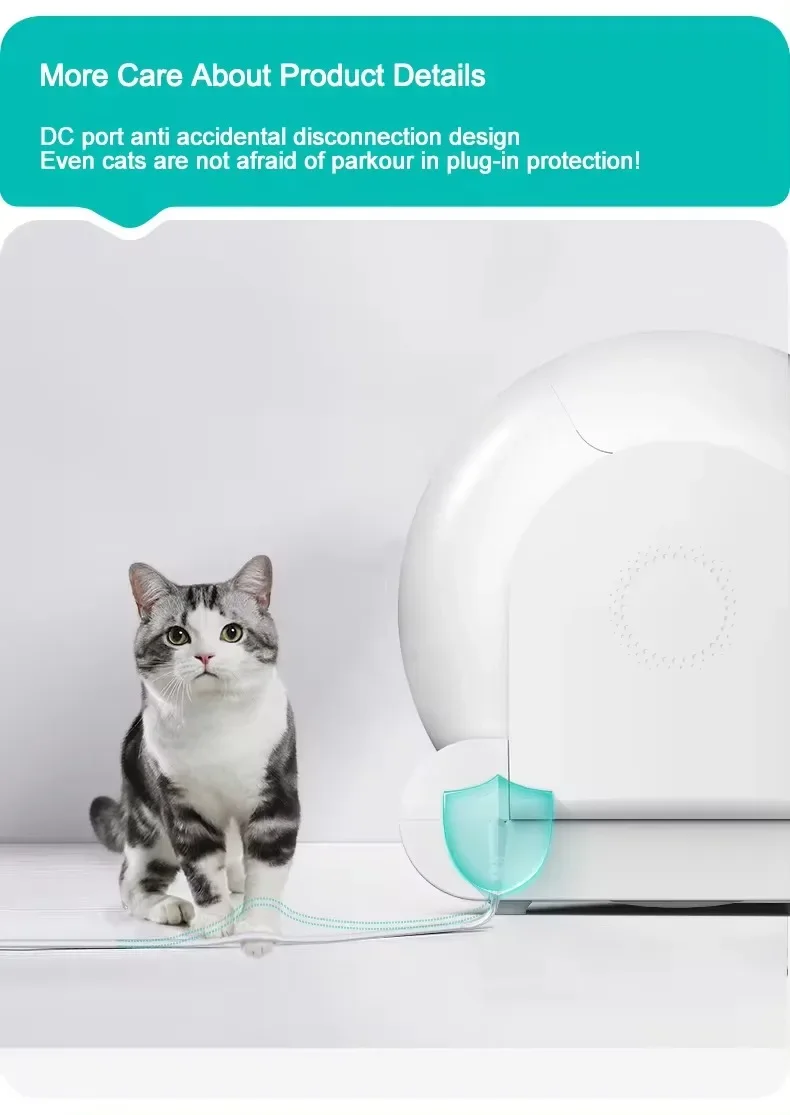 The low-maintenance automatic litter tray is large enough to hold up to 3 adult cats. There's no need to worry about changing litter frequently, making it perfect for busy people. Cleaning the automatic litter tray is effortless, it has only two parts and is very easy to assemble and disassemble, as well as rinsing the litter box. Note that the base cannot get wet.