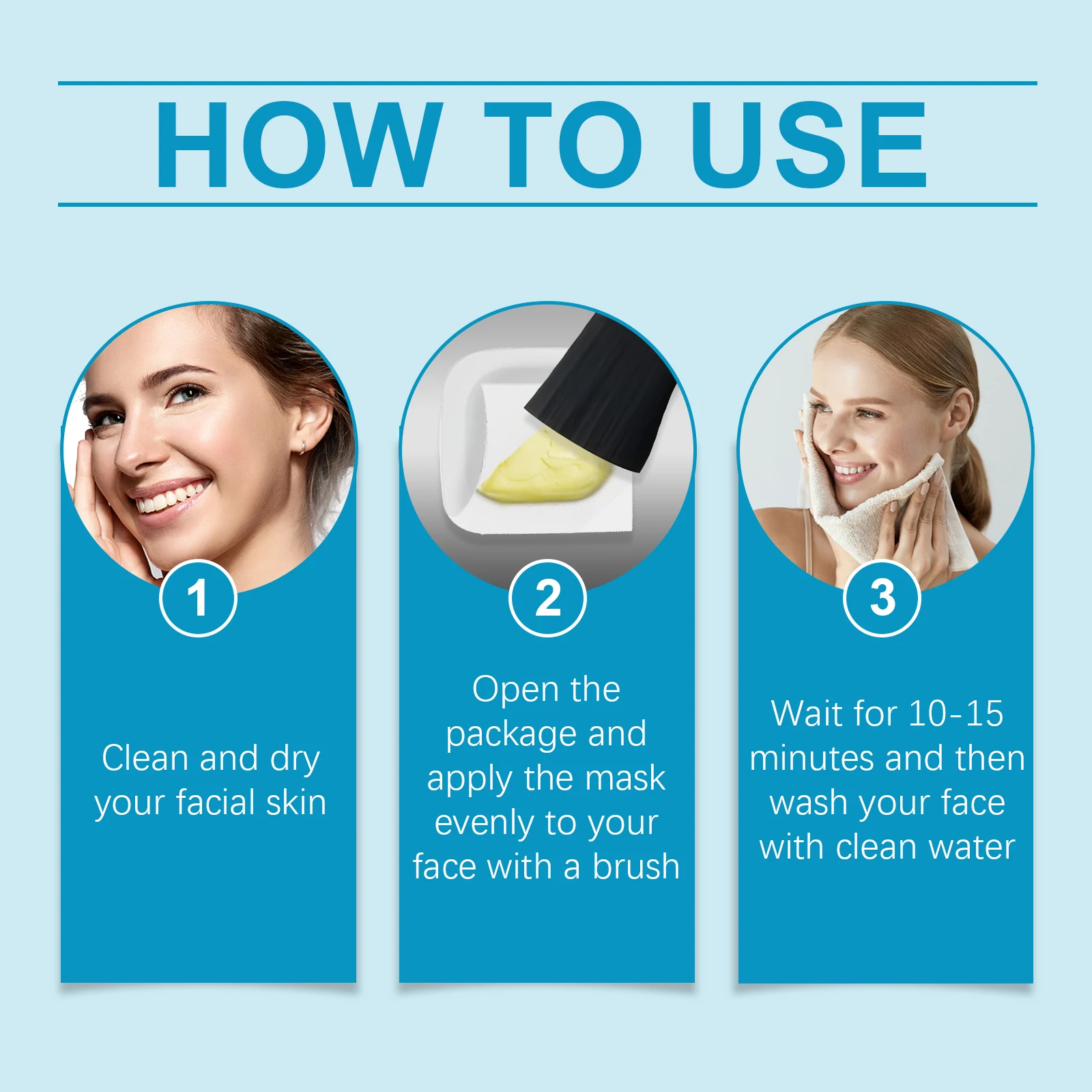2.Open the package and apply the mask evenly to your face with a brush