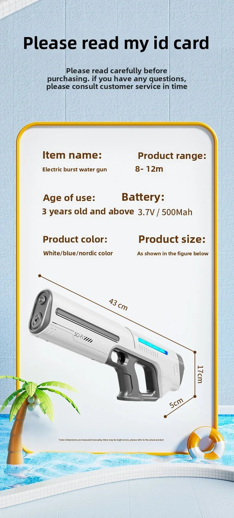 Children Fully Automatic Water Gun Storage Gun Large Capacity Electric Water Absorbing Toy Gun Summer Outdoor Water Toy Gift