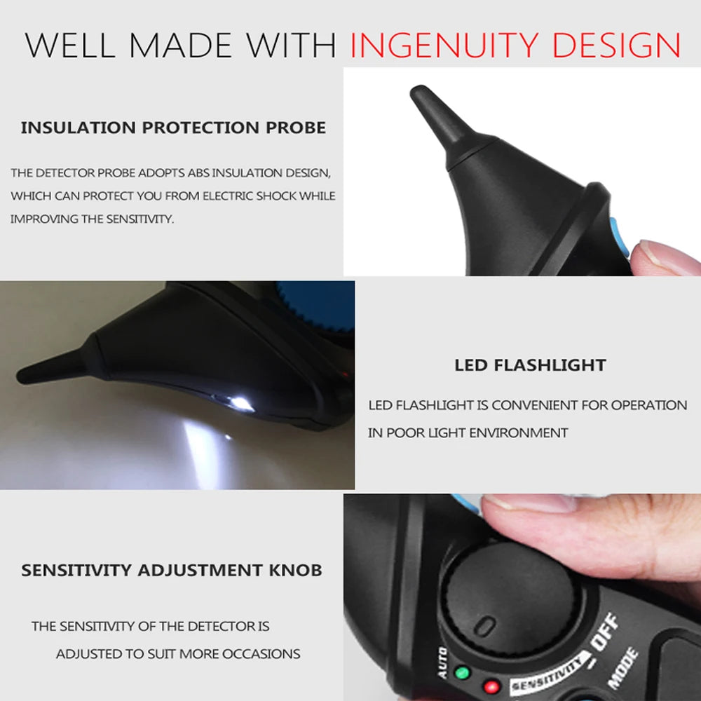 Has Induction dangerous voltage alarm, Live/Neutral wire distinction, Live Wire Breakpoint Locate, Flashlight, Continuity check features etc.