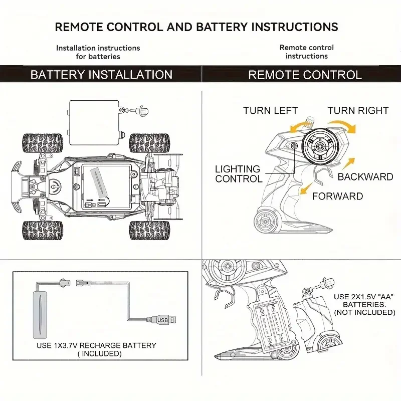 • High-Capacity Battery for Extended Play — Powered by a high-performance 3.7V 500mAh rechargeable lithium-ion battery, this RC vehicle offers up to 20 minutes of high-speed racing at speeds reaching 20 km/h. The quick-charging feature allows a full charge in approximately 60 minutes, minimizing downtime for continuous outdoor fun in parks, backyards, or open fields.
