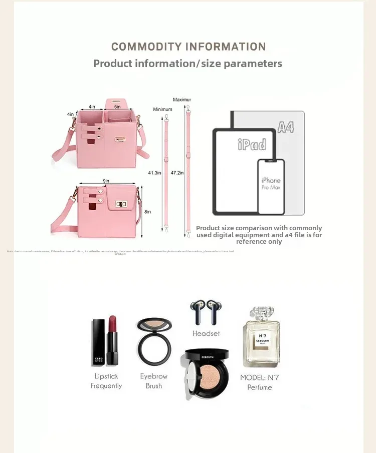 • Versatile Design : The simple square crossbody design makes it a versatile accessory for various occasions, blending functionality with style.