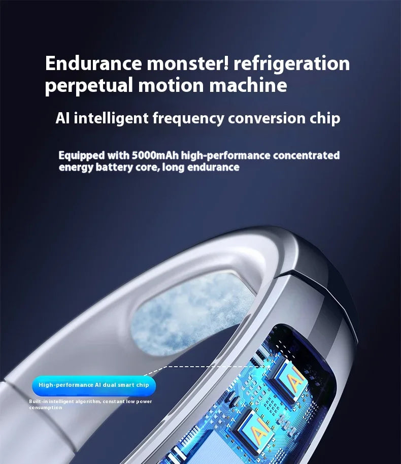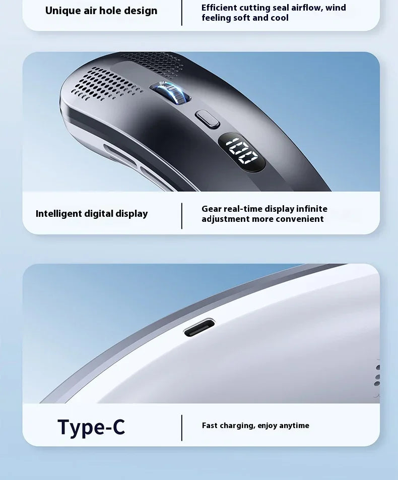 • Innovative Cross-Cut Design & Turbine Blades – Ensures Consistent & Even Airflow, Operates Quietly, and Prevents Hair Entanglement or Dust Ingress — Delivering a Comfortable & Safe Cooling Experience • Multi-Angle Adjustable Neck & Hands-Free Design – Features a Soft, Adjustable Neck Strap with Flexible Connectors for a Customized Fit, Allowing Hands-Free Operation During Sports, Outdoor Work, Traveling, or Daily Commutes • Long-Lasting Battery Life – Powered by a High-Capacity 5000mAh Rechargeable Battery, Providing Up to 9 Hours of Continuous Cooling on a Single Charge (Depending on Speed Settings) — Perfect for Extended Outdoor Activities or Indoor Use • Easy & Precise Speed Control – Select from 100 Adjustable Speed Levels by Repeatedly Pressing the Power Button, Enabling Personalized Comfort and Quick Cooling Response • Compact, Lightweight & Portable – Designed for Convenience, Ideal for Camping, Hiking, Gardening, Lawn Mowing, Running, Walking, Outdoor Work, Commuting, Office, Gym, Home, and Travel — Keep Cool Anywhere, Anytime • Rapid Cooling Technology – Delivers Refreshing, Cool Air Within 3 Seconds, Effectively Reducing Hotness and Enhancing Comfort During Hot Weather, Physical Activities, or Indoor Workouts