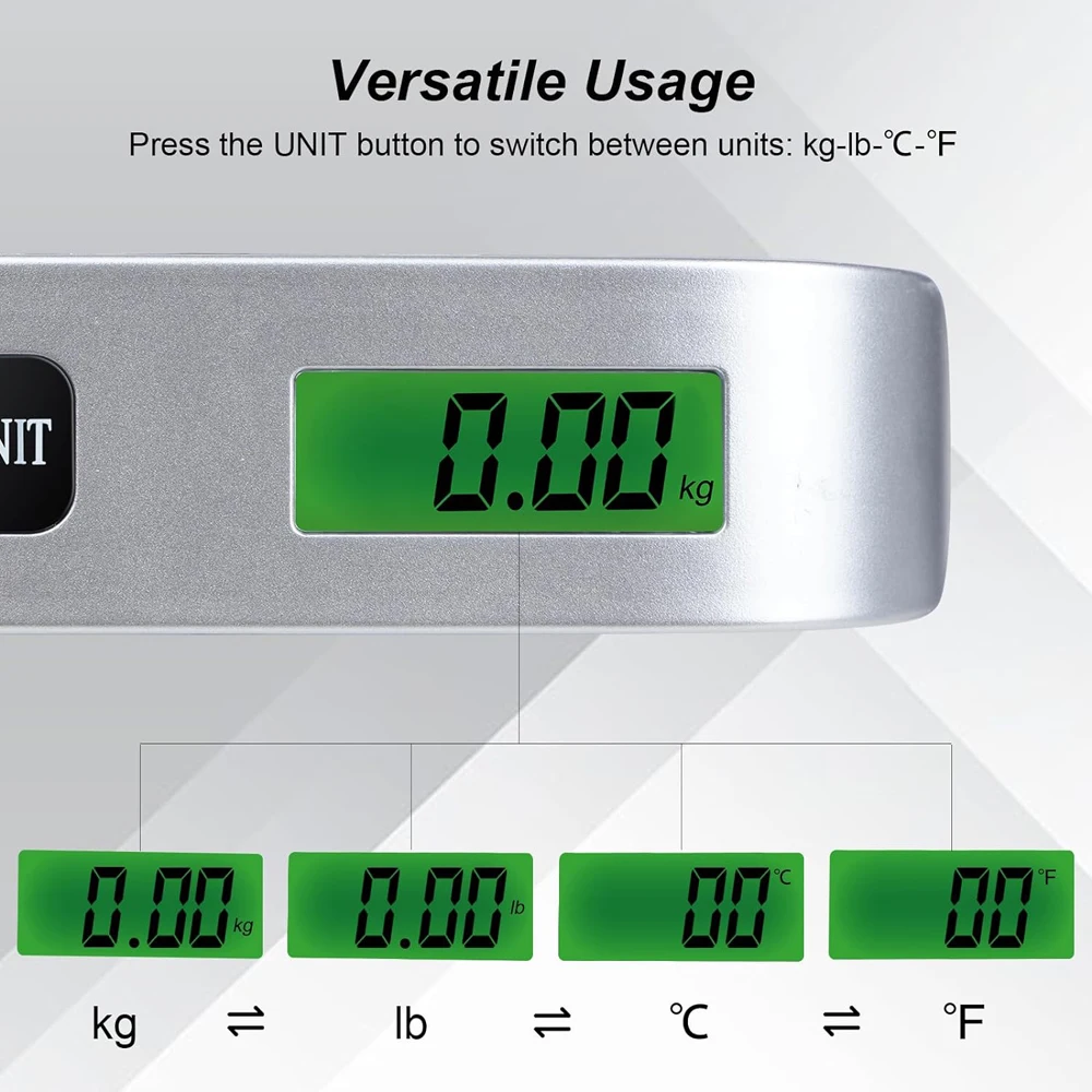 Feature 2: Protable Luggage Weight Scale with LCD Display & Temperature Sensor, Travel Accessories Baggage Scale