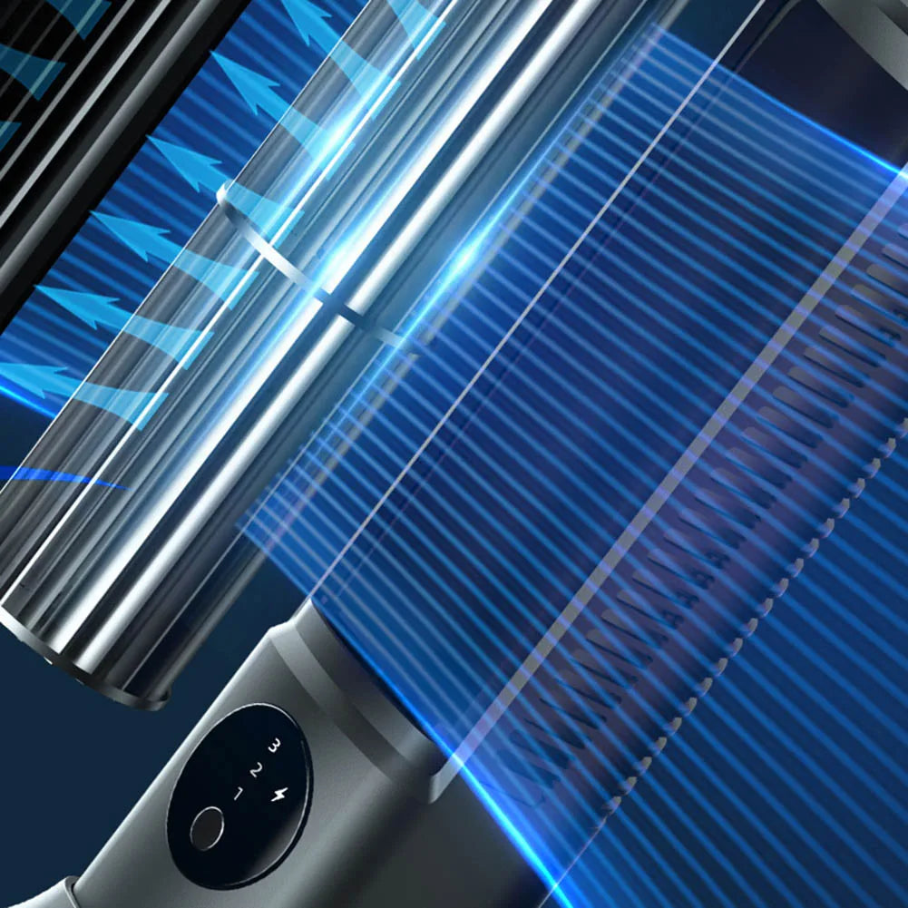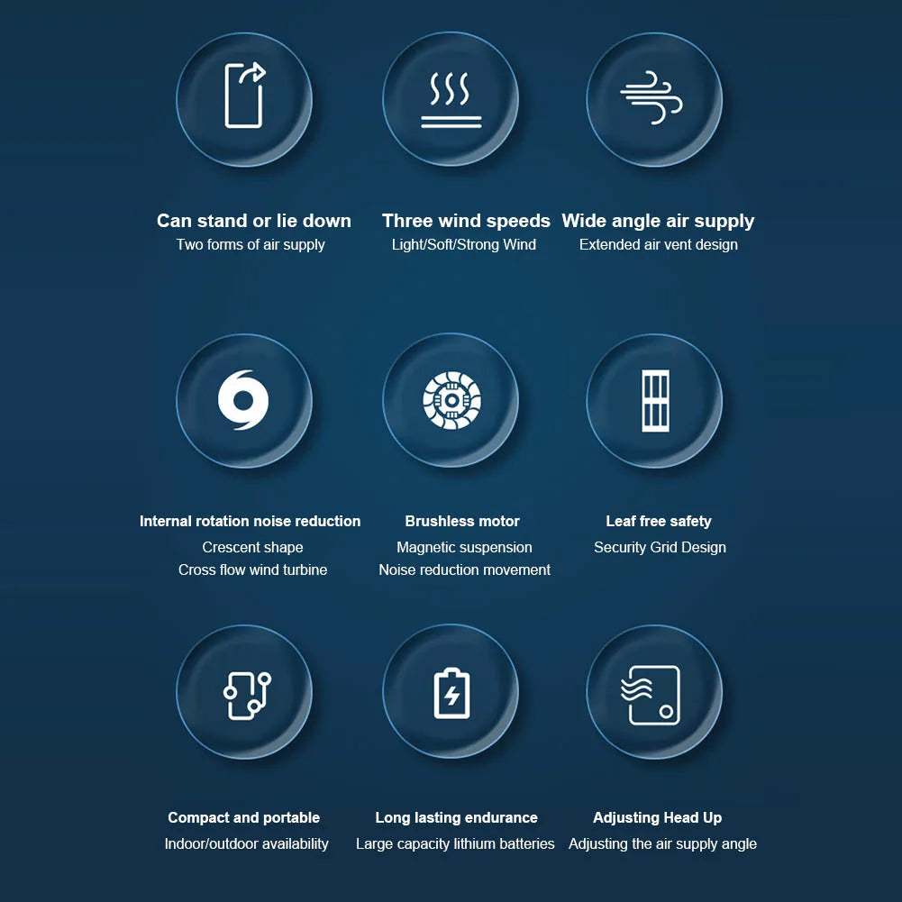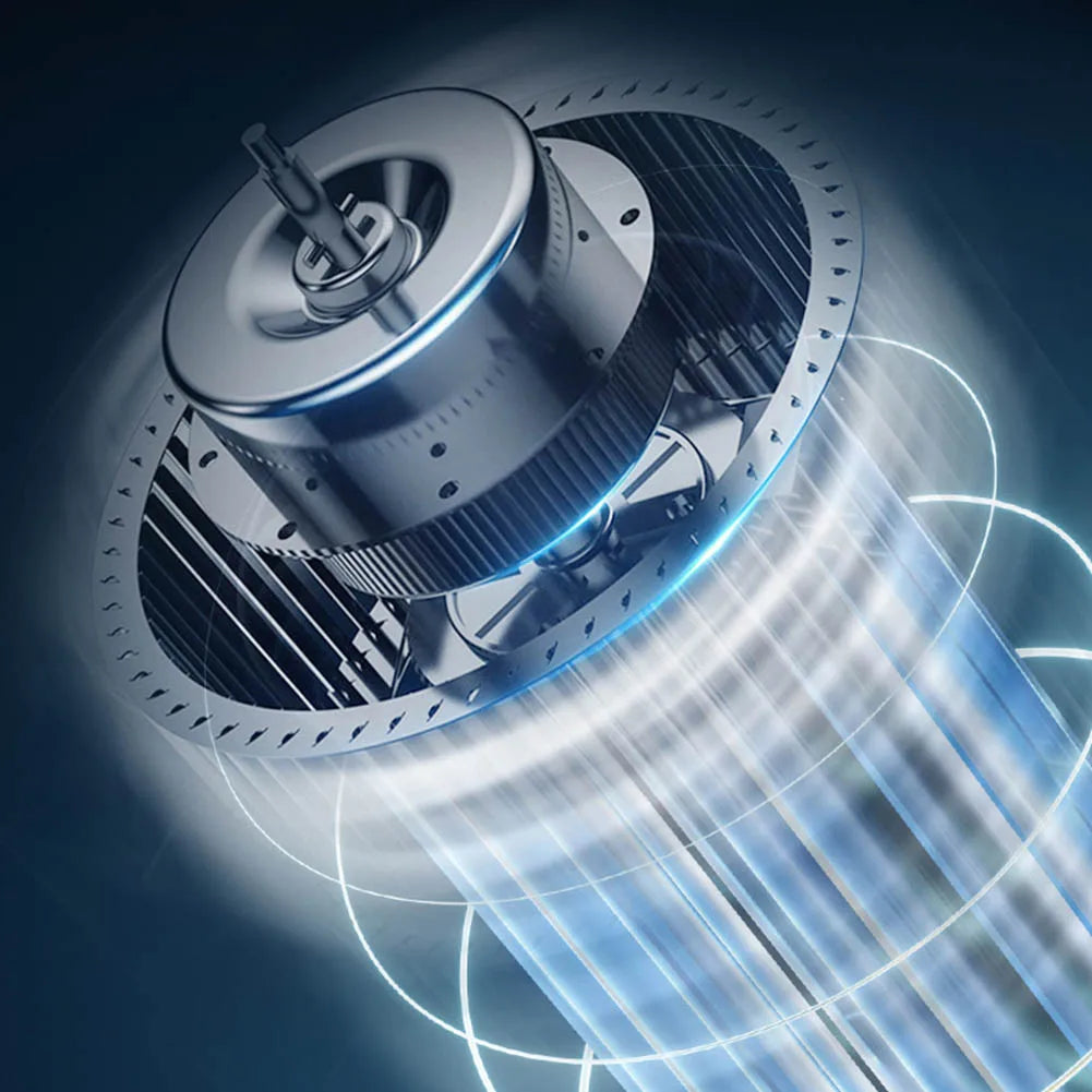 2. Wide-Angle Airflow: Experience gentle and even cooling with the quiet bladeless fan's wide-angle airflow. Its dual-stage fan wheels deliver delicate, consistent cooling, ensuring you stay comfortable without headaches, even during prolonged use.