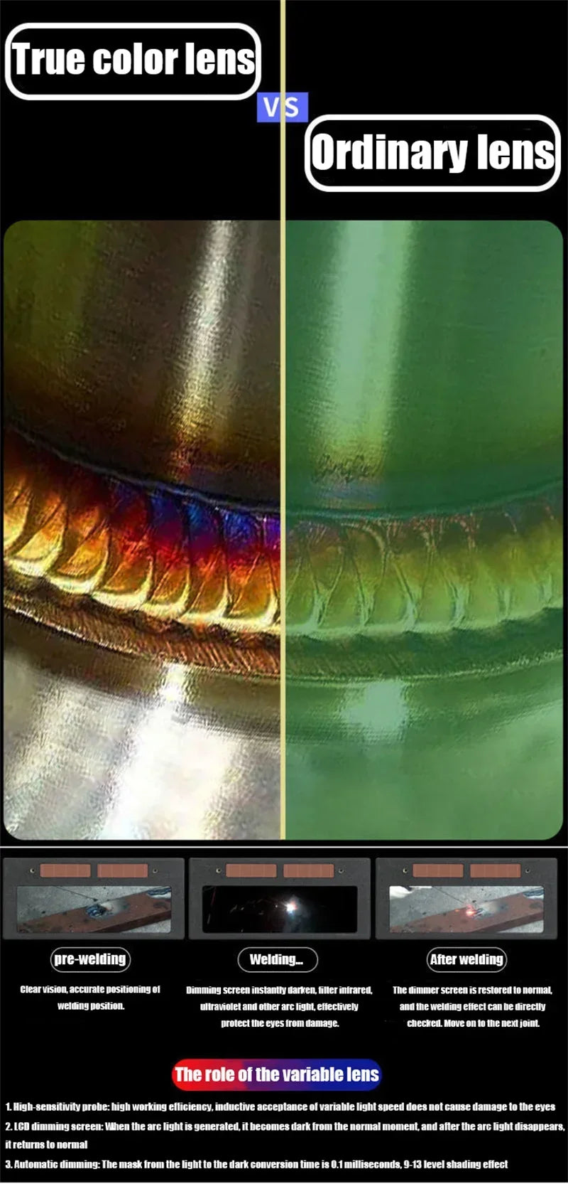True Color Welding Helmet Automatic Dimming Welding Mask Large View Auto Darkening Facemask for Arc Welder Grinding Cutting Tool