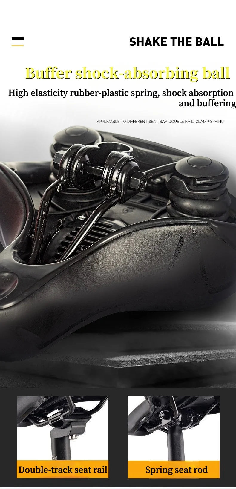 • Featuring cutting-edge shock absorption technology, this bike saddle cushions impacts from rough terrains, bumpy city streets, and uneven surfaces — providing a smooth, stable ride with reduced physical strain. The spacious, padded rear section offers exceptional support for long-distance rides, endurance cycling, mountain trails, and mountain bike adventures—maximizing comfort on challenging routes.